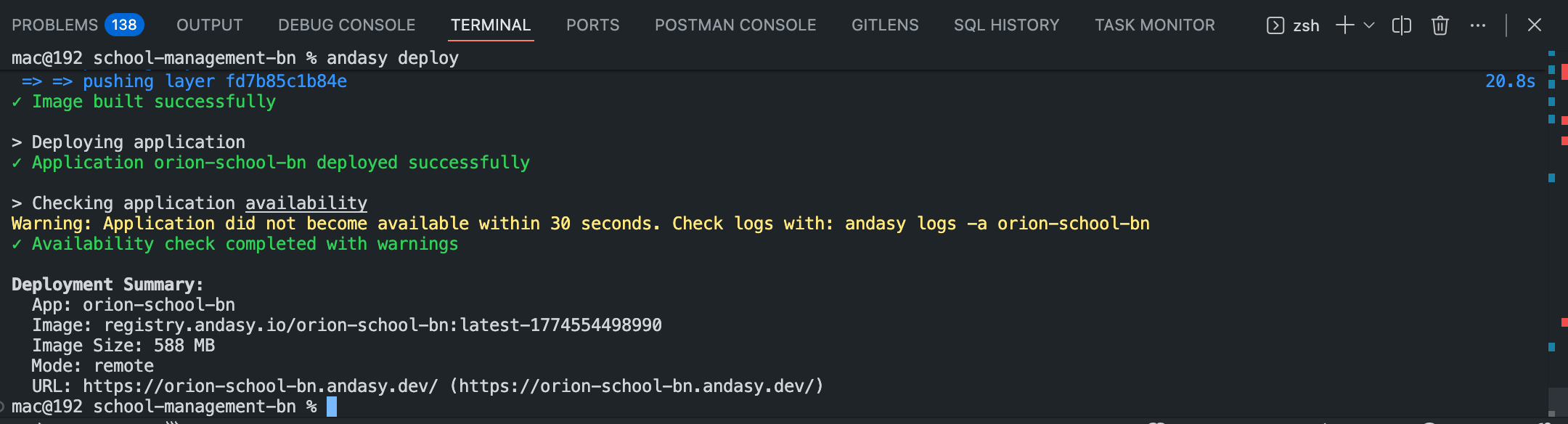 Regarding the last screenshot you shared, it looks like your builder disk is full from the last build. Can you restart your builder using the andasy org builder restart command and then redeploy again?