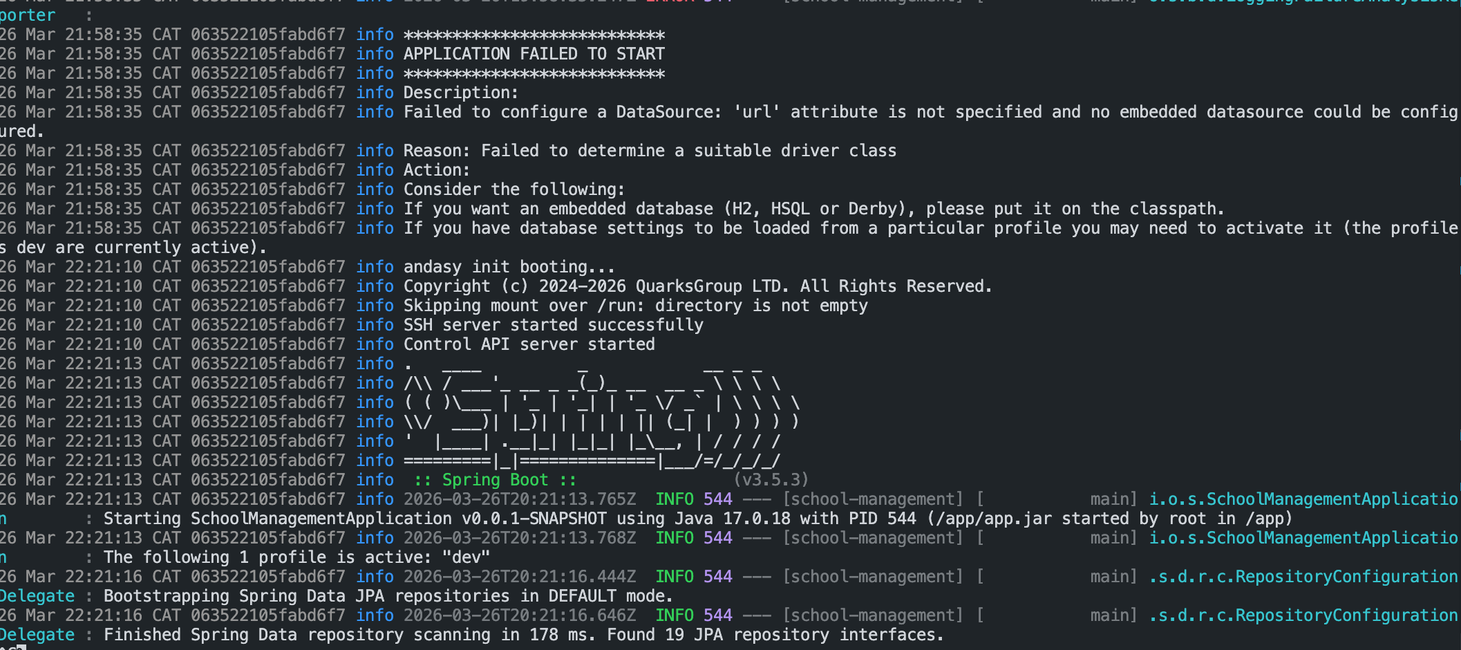 Currently, Andasy doesn’t detect or generate a Dockerfile for Java services. You can create it manually and then run the setup again before deploying.